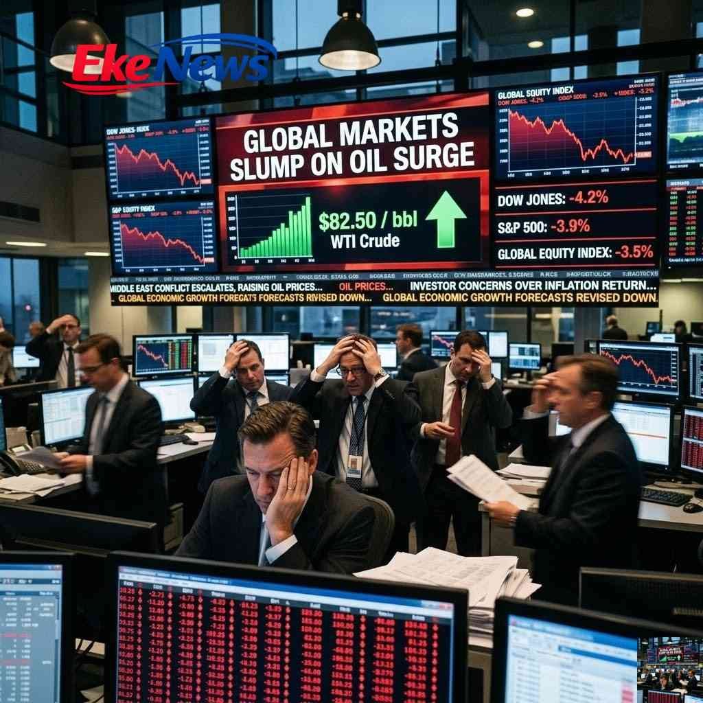 Global Markets Slump on Oil Surge: Middle East Conflict Reignites Inflation Fears as Crude Tops $80 Scene Description The opening